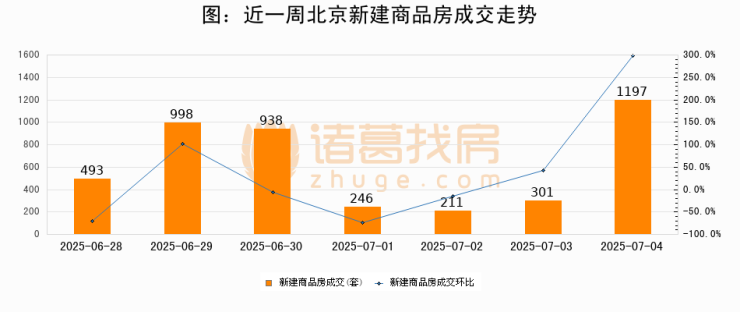 【北京成交日报】07月04日新房成交1197套、二手房444套;涨价房源75套