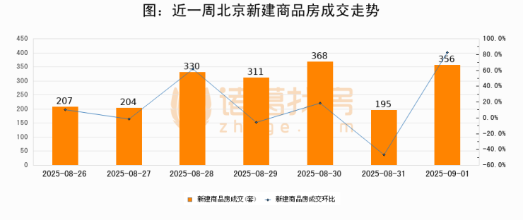 【北京成交日报】09月01日新房成交356套、二手房488套;涨价房源64套