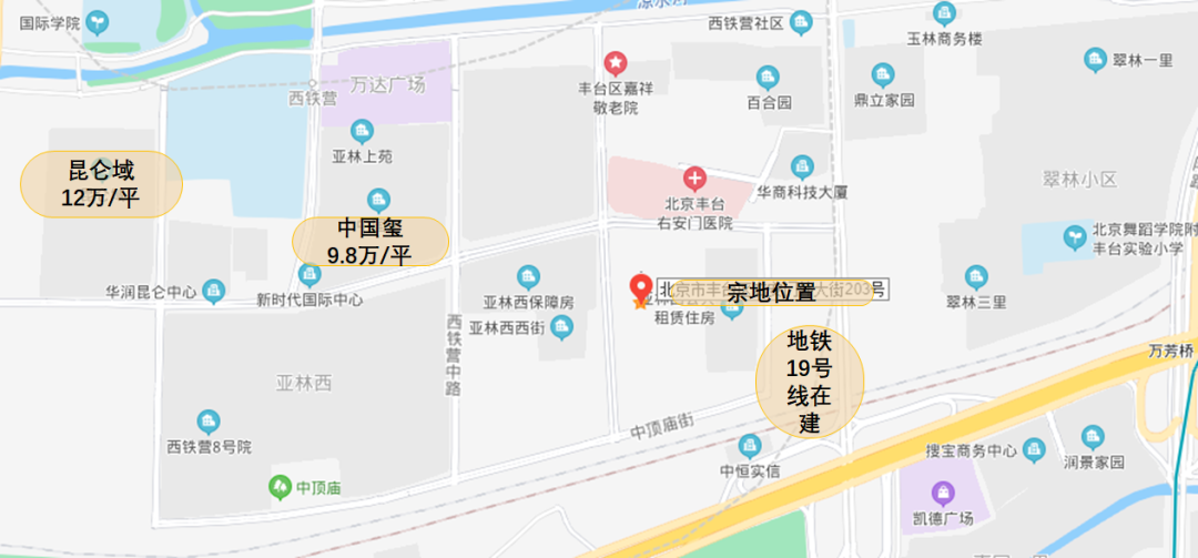 地块同样位于南三环内,周边交通便利,2公里内涵盖3个地铁站;教育资源优质,配套更加完备,且隶属丽泽商务辐射区域,坐享利好。