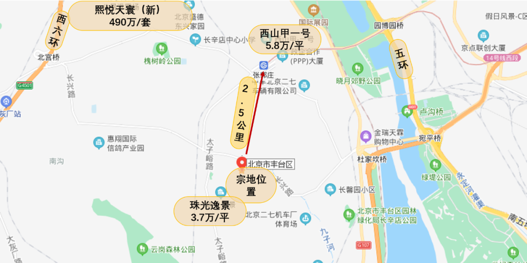 地块紧邻规划的卢沟桥国家文化公园核心区,距地铁14号线张郭庄站2.5公里左右,周边还有单价5打头的新房熙悦天寰。