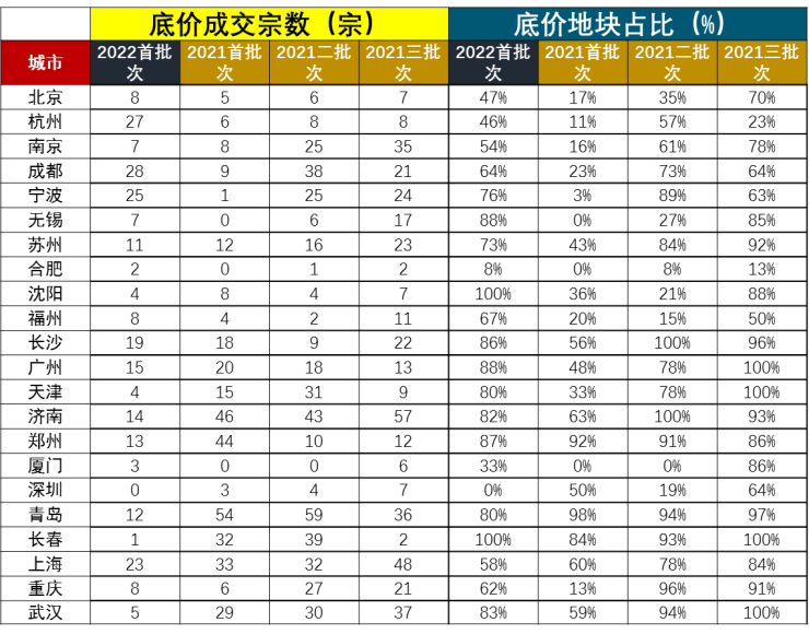 从各城市地块成交具体情况看,本批次触顶成交的地块屈指可数,大量地块底价成交,市场热度分化趋势逐渐加大。