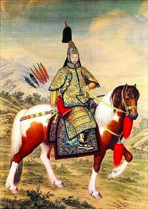 到了清朝时候,满族虽然没有蒙古族人那么骁勇豪战,但“骑射”技术却是一流,满族有谚语道,“不会骑马不要去打猎,不会拉弓不要去打仗”。乾隆帝(也就是主人公小弘历的上N代)时期颁布了一系列严格的命令,包括八旗军事将领不得乘轿,只能骑马。每逢巡幸,无论是在热河围猎,还是在南巡时进入苏州城,乾隆帝总是骑在马上,并有了《乾隆骑马图》。乾隆帝还一再宣称自己擅长射箭,曾有过“发二十矢,中十八,末一矢正中五层之中”,并乐衷于表演给朝臣及各省官员看——《乾隆射箭图》、《乾隆皇帝巡狩射猎图》等。他甚至在唐代画家韩幹的代表作《照夜白图》上盖了26方印,而且个个都不重复,以此来表达他对这匹画马的狂热喜爱。