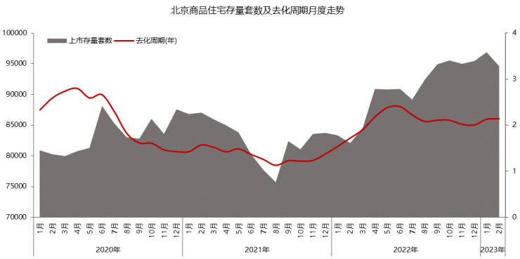 据中原视点数据统计,截止2月底,北京新建商品住宅库存9.5万套。