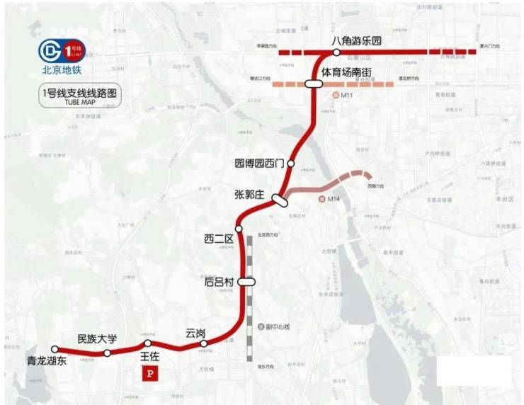 目前据师妹了解,1号线支线在体育馆南街站可换乘11号线,在张郭庄站可换乘14号线,在后吕村站可换乘城市副中心线。