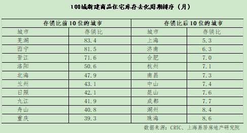百城新建商品住宅存销比即库存去化周期为18.9个月,更有39个城市去库存周期超过两年。