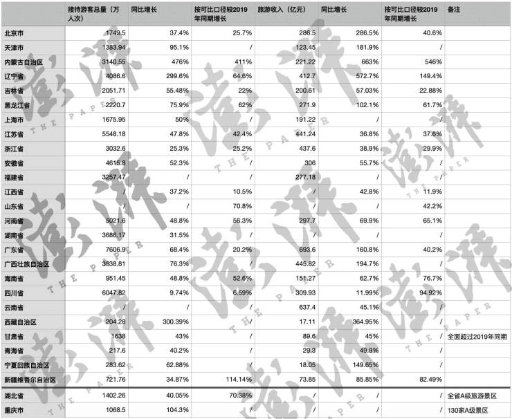 今年春节期间,西藏共计接待国内外游客204.28万人次,同比增长300.39%;实现旅游总收入17.11亿元,同比增长364.95%。辽宁省共接待游客4086.6万人次,同比增长299.6%,按可比口径较2019年同期增长64.6%;实现旅游综合收入412.7亿元,同比增长572.7%,按可比口径较2019年同期增长149.4%,人均消费过千元。