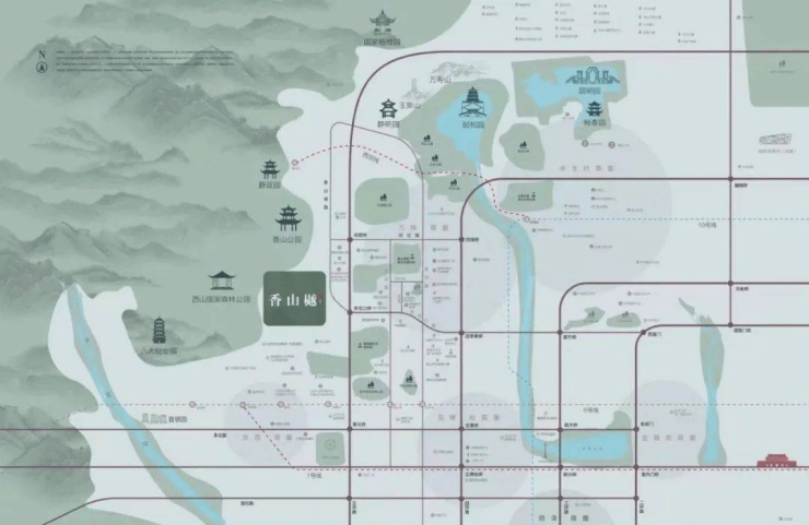 地块位于西五环边,南侧是西山美庐,项目一公里内有香山壹号院、颐和金茂府,五道口、中关村、万柳三大商圈环抱,购物休闲等商业配套十分便捷,至四环中关村走多条主干道路可在10分钟之内到达。