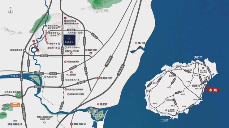 玉海馨著安居房项目位于琼海市嘉积镇金海北路。项目周边汇集海桂学校、嘉积中学、富达美商业广场、兆南商业广场等商业配套及重要学府资源。项目规划总用地面积约65816㎡,容积率约2.0,绿地率约40%,户型为建面约99-119㎡三至四房。项目内不仅有5100㎡全业态一站式社区商业街,还建有体育健身场地、儿童游乐区、羽毛球场、篮球场、中心花园等休闲娱乐场地,社区内还应用人车分流的设计,给业主带来安全健康的生活环境。