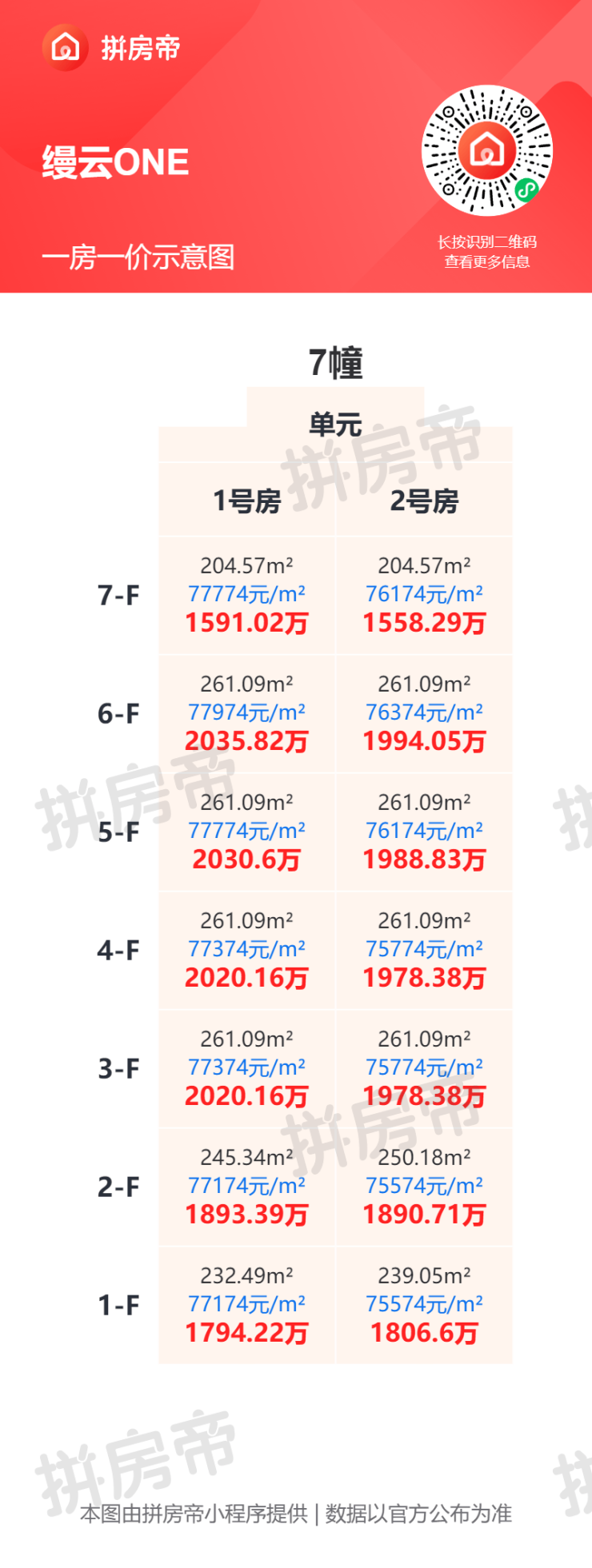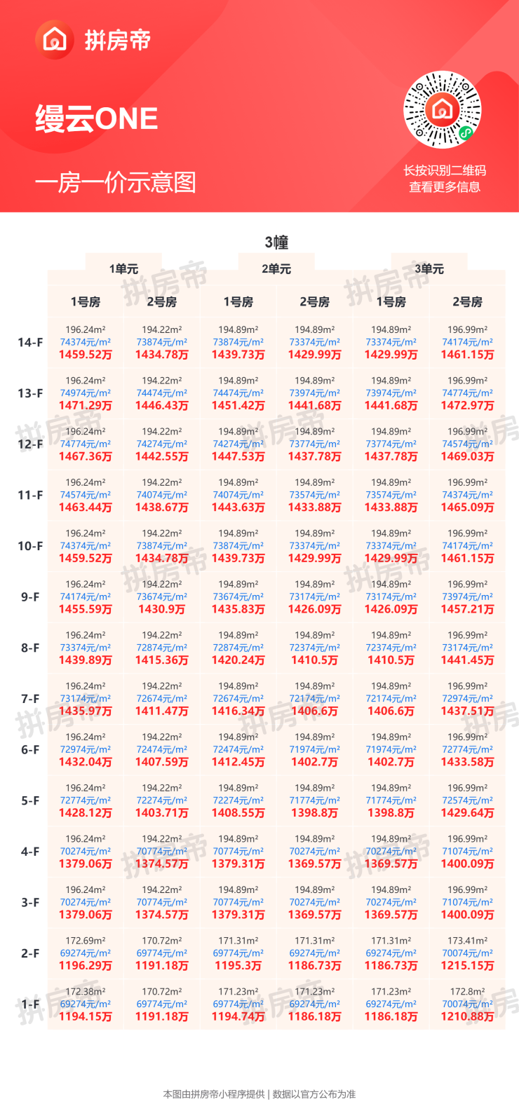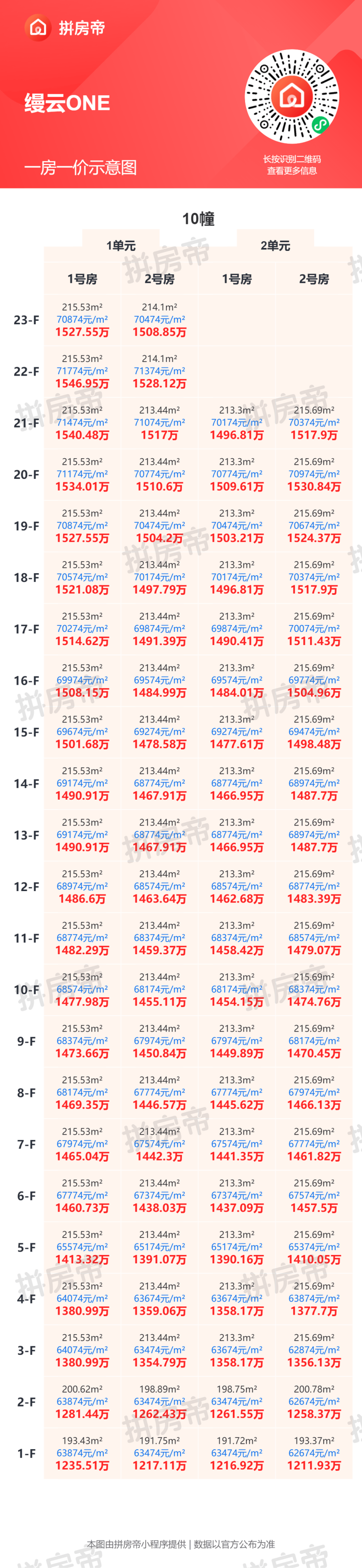 通州豪宅盘1200万起, 缦云one一房一价表查询