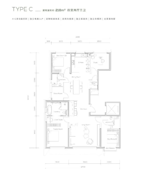 缦云ONE仅规划346席,占地3.4万方,总建面13.5万方,其中地上建筑面积8.1万方,地下建筑面积5.4万方。整个地块占地300亩,分五期开发。二期和三期未来也是做大平层,但是产品都是高层。四期和五期是商业综合用地。