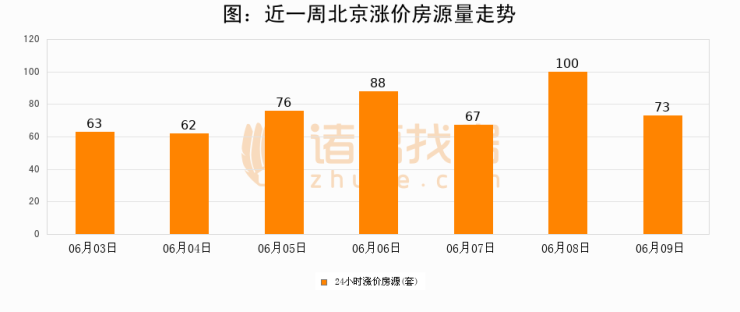 根据诸葛找房数据显示,北京24小时涨价房源量为73套,较06月08日减少27套,环比下降27%。与此同时,涨价房源占比小幅回落,对于购房者来说是一个入市窗口期,购房者可抓住时机入市。