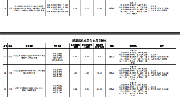 2018年12月底,北京市规划和自然资源委员会公布了近期拟供应住宅项目清单,涉及12个区,34个地块。其中11个地块规划用于共有产权用地,其余23个地块为商品房。让人颇为意外的是,大兴此次并没有供应共有产权地块,占据的9个地块全部用于商品房,建筑规模可达107.62万平万米,预估将近12000套房源。