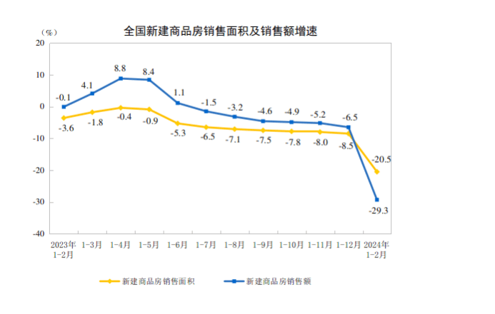 国家统计局数据显示,1-2月全国房地产开发投资累计同比继续下降,但降幅相比于2023年全年有所收窄。