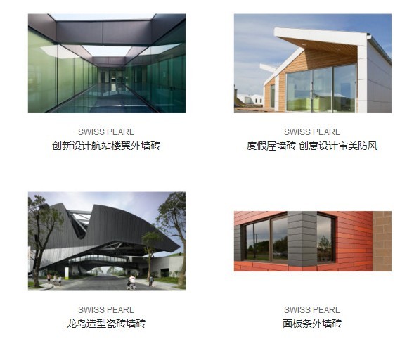 瑞士SWISSPEARL公司的优质、高端建筑物的立面系统是欧洲的最主要制造商。多年来,Swisspearl一直致力于开发创新和可持续的产品,由天然材料制成,以创新和专业技能去完成,充分注重美学、质量,对人和环境有很强的责任感。