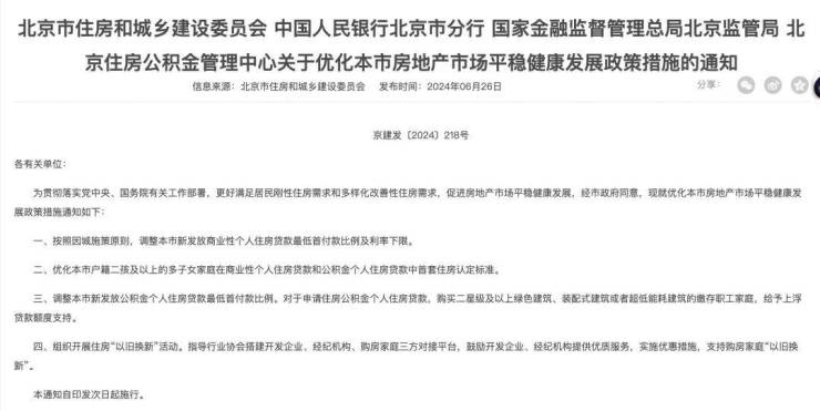 市住建委、央行北京分行、金融监管总局北京分局、北京公积金中心等部门联合下发通知,出台一系列房地产调控措施。