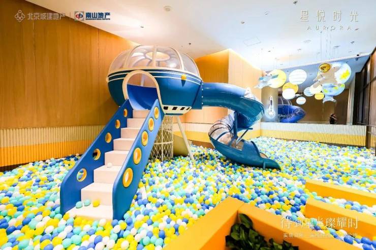 星梦·童趣: 儿童活动区以“太空奇妙漫游”为主题,贴心铺设安全塑胶地面并设置看护座椅,让孩子们在此尽情编织快乐与梦想。