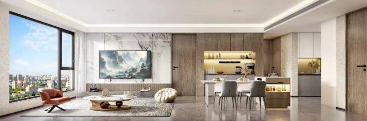 精装交付更是省心到家:全屋定制把家政间柜、冰箱柜都安排好了,一线品牌的家电——烟机灶具、智能水盆、净水器、燃气热水器、中央空调、地暖...全都配齐。这不是买了个房子,这是直接打包了一个高品质的生活啊!
