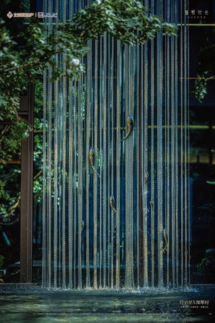 一、提前开放约2000㎡实境会所,打造约100米洄游景观连廊,近10米艺术飞瀑从高空砸向庭院;