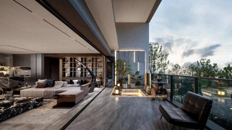 约6m挑高阳台,至高约80m³立体式庭院,最重要的是户户全赠送!整座空中阳台远远看去就像是一座座悬浮岛屿,再加上超高窗墙比,南北通透、三面采光,带来的“松弛度假感”,仿佛置身一座“会呼吸的房子”,浮岛、花园、绿洲,未来足不出户就能轻松实现烧烤轰趴、花园下午茶的向往生活。