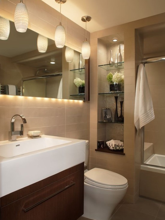 5、凹槽:有的浴室墙面原本就设置有凹槽,可以就地取材加以利用。有的卫生间因为包管道和通风,也可以“变废为宝”,打出凹槽。在空间和格局允许的情况下,可以自行打出这种类似的凹槽,向内拓展空间。这样扩大了储物空间,洗浴用品有了藏身之处,使用起来还很方便。