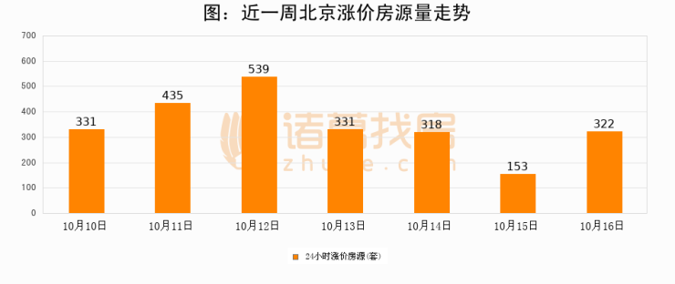 根据诸葛找房数据显示,北京24小时涨价房源量为322套,较10月15日增加169套,环比上涨110.5%。与此同时,涨价房源占比小幅扩大,业主信心有所提升。