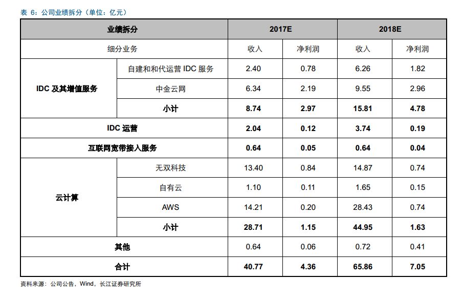 2017 年 11 月,公司与亚马逊签署了《分期资产出售主协议》,公司将以不超过 20 亿元向亚马逊购买基于亚马逊云技术相关的特定经营性资产,从而在中国境内持续稳定地提供并运营基于亚马逊云技术的云服务,进一步提高公司运营的 AWS 云服务的安全性与服务品质。我们认为,该协议的签署将显著提高公司云服务的质量,通过借鉴亚马逊AWS 的先进云计算技术与经验,提高在国内云服务市场的竞争力。