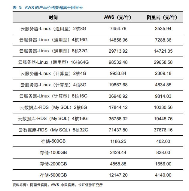 AWS 是全球 IaaS 龙头,阿里云是国内的 IaaS 龙头。从国内的市场格局看,表面上 AWS国内运营将于阿里云形成竞争关系。不过,通过研究对比,我们认为由于 AWS 与阿里云的目标客户群体不同,两者在国内的竞争格局趋向于各有所长。