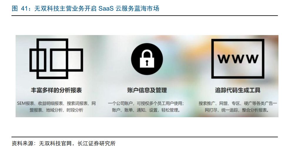 从主营业务看,创始之初少有科技以 SEM(在互联网用户搜索关键词时向其展示特定营销内容的互联网营销方式)和 DSP(需求方平台)为主。目前,少有科技专注于纯搜索引擎(SEM),而剔除了 DSP 业务。对母公司光环新网而言,少有科技夯实了公司云计算业务中的 SaaS 服务,丰富了公司的云计算服务种类,进一步拓展公司大数据服务领域和能力。