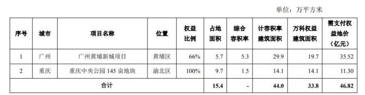 新增开发项目方面,7月份,万科新增加开发项目2个,分别位于广州和重庆,项目占地面积15.4万平方米,计容积率建筑面积44万平方米,万科权益建筑面积33.8万平方米,支付权益地价46.82亿元。