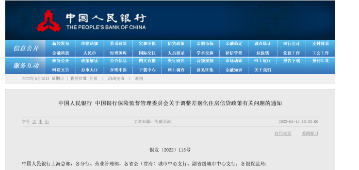 5月15日,据中国人民银行官网消息,为坚持房子是用来住的、不是用来炒的定位,全面落实房地产长效机制,支持各地从当地实际出发完善房地产政策,支持刚性和改善性住房需求,促进房地产市场平稳健康发展,中国人民银行及中国银行保险监督管理委员会按照国务院有关部署,发布关于调整差别化住房信贷政策有关问题的通知。