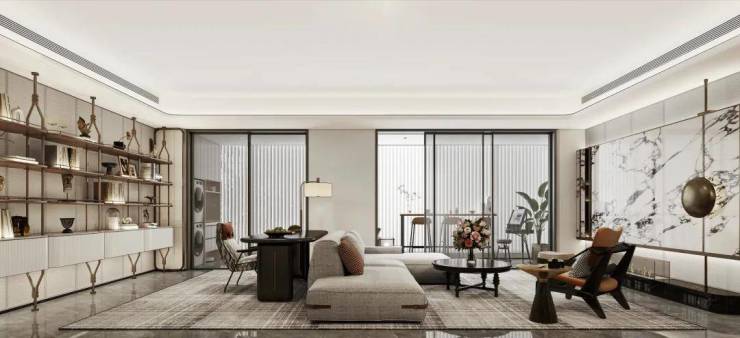 凸出式阳台让阳台和客厅既在空间上联动,功能上又相互独立,实现了业主的多功能生活场景。