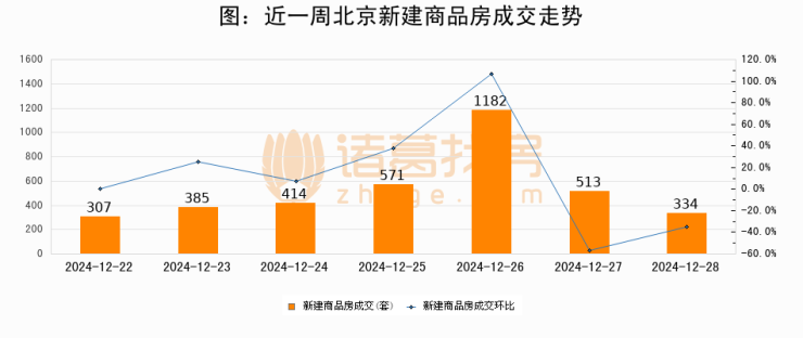 【北京成交日报】12月28日新房成交334套、二手房413套;涨价房源111套