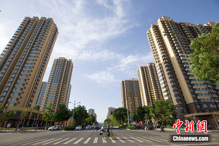 6月1日,山西太原,市民从楼盘前经过。中新社记者 张云 摄