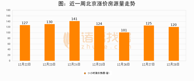 根据诸葛找房数据显示,北京24小时涨价房源量为120套,较12月27日减少5套,环比下降4%。与此同时,涨价房源占比小幅回落,对于购房者来说是一个入市窗口期,购房者可抓住时机入市。