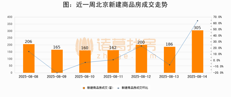 【北京成交日报】08月14日新房成交305套、二手房659套;涨价房源65套