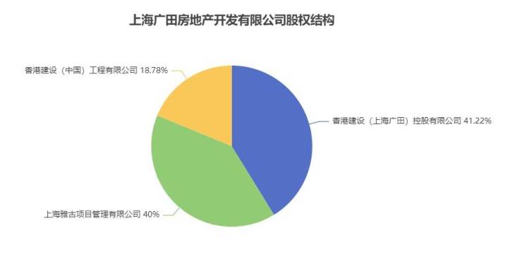 标的企业股权结构显示,上海广田房地产开发有限公司此前由上海雅古项目管理有限公司持有40%,另由金光集团注资的香港建设(上海广田)控股有限公司及香港建设(中国)工程有限公司合计持有60%股权。