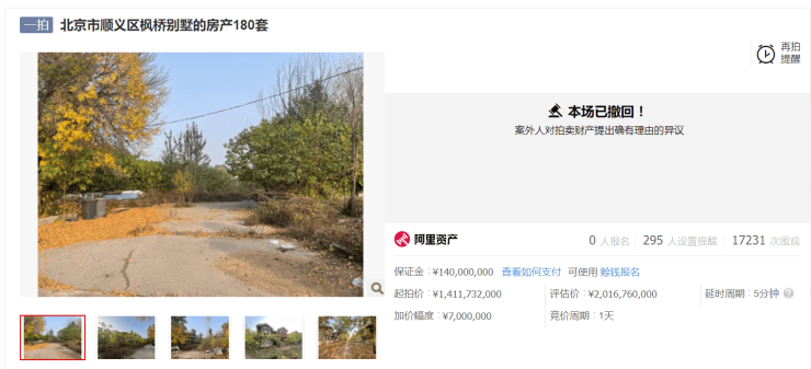 起拍价超14亿元!北京180套别墅临拍前因“案外人异议”撤回,所在项目此前曾历经多次转手和拍卖