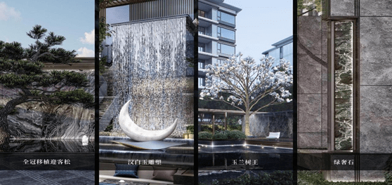 更遵循「臻奢选材」的准则,循迹全球极品1%的绿奢石,臻选汉白玉雕琢明月,无数臻稀石材,打造至臻艺境。以全冠移植的重金技艺,将迎客松、玉兰树王等名贵树种移至园中,只为塔尖赏鉴,彰显尊贵显赫。