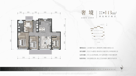 建面约143㎡臻藏平层墅,约5.3米极致层高,容纳上下双层境界的空间奢享,首层臻享约13.7m南向四面宽,尽揽4功能南向采光;建筑的每一面窗,都可捕捉迷人的全景。