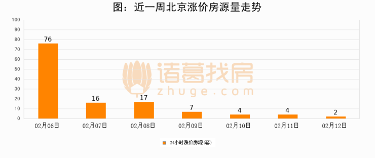 根据诸葛找房数据显示,北京24小时涨价房源量为2套,较02月11日减少2套,环比下降50%。与此同时,涨价房源占比小幅回落,对于购房者来说是一个入市窗口期,购房者可抓住时机入市。