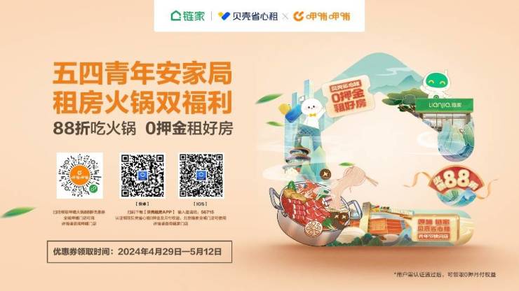 此次北京链家与呷哺呷哺、贝壳省心租的跨界合作,是贴近青年生活场景方面的一次创新探索。在青年租房场景中,贝壳省心租凭借 7×24 小时专属管家在线等优质服务,为租客带来安心的租住体验。此次合作,北京链家携手贝壳省心租、呷哺呷哺为用户打造了新颖的活动互动体验,推出专属租房与美食优惠福利,满足了青年消费者对生活的美好追求。诚邀每一位在北京奋斗的青年,加入“五四青年安家局 租房火锅双福利”活动。无论是寻找理想居所,还是享受火锅美味,这里都有属于你的那份专属惊喜。