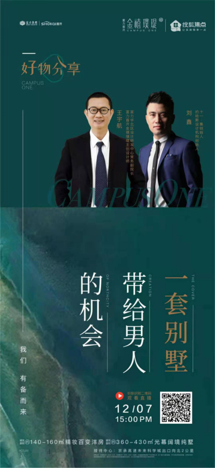 2020年12月7日15:00,富力首开·金禧璞瑅主创设计师王宇航和嘉宾刘鑫将带你感受墅质感和墅质生活。这个项目是富力首开双雄联袂匠筑2020北京全新力作,整个设计从山水等自然景象提取意向,将“自然主义”的生活艺术,贯穿于空间的情致中,打造一个时间性与空间性界限分明而又融合共存的生活空间,营造出与居住者共鸣的空间情绪。在分享定制住宅的同时,设计师和嘉宾会与广大网友展开互动,并回答每个设计亮点中的问题。本次直播共有五个场景的探寻,分别是园林、会客层、家庭层、主人层和悦享层,在探寻过程中向网友展示项目设计理念和区域价值。