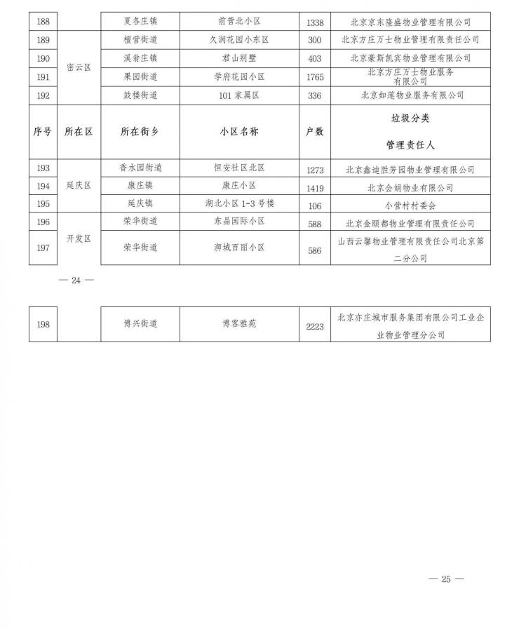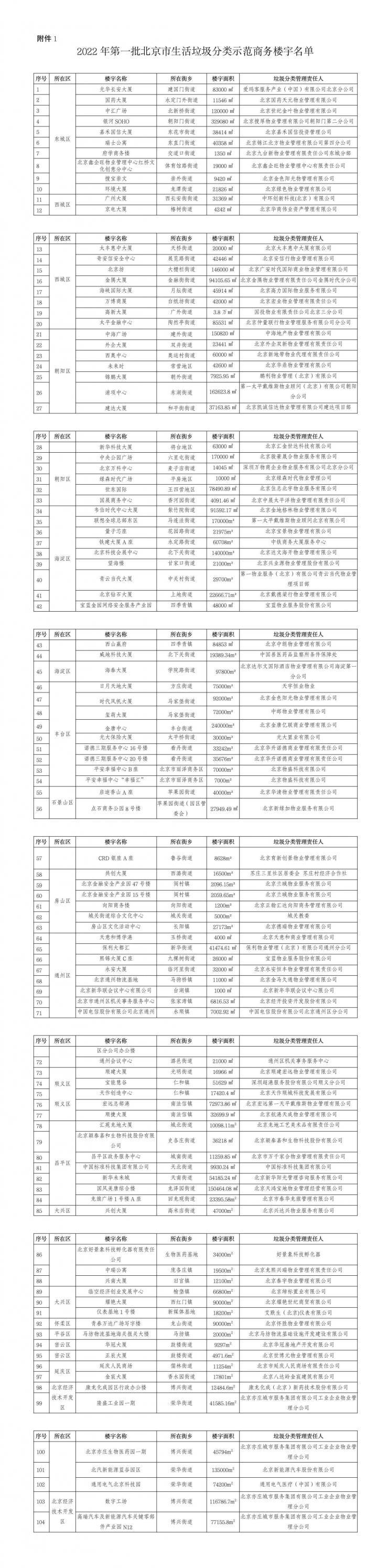 经过区级评议、现场核验、市级综合评议等一系列程序,2022年排名前列批北京生活垃圾分类示范小区名单正式公布,东城区东华门街道银闸20号院、西城区什刹海街道大拐棒4号小区、朝阳区六里屯街道八北二小区、海淀区东升镇芳清园小区等198个小区榜上有名。而上榜2022年排名前列批北京市生活垃圾分类示范村的,则包括朝阳区金盏地区黎各庄村、门头沟区妙峰山镇水峪嘴村等74个村。光华长安大厦、银河SOHO、北京坊、中海广场、北京科技会展中心等104个商务楼宇入选2022年排名前列批北京生活垃圾分类示范商务楼宇名单。