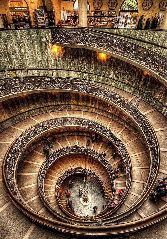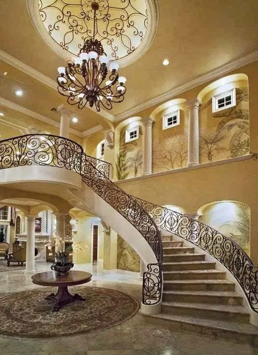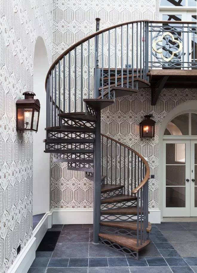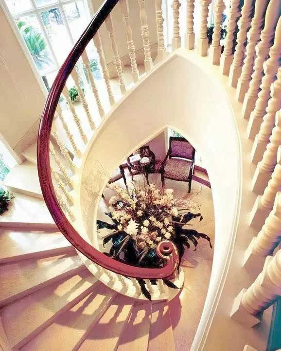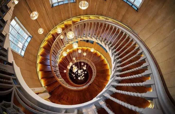 螺旋楼梯构造复杂,特殊的形状而呈现一种特别的美感,许多螺旋楼梯看起来既壮观美丽,又让人心惊胆颤。