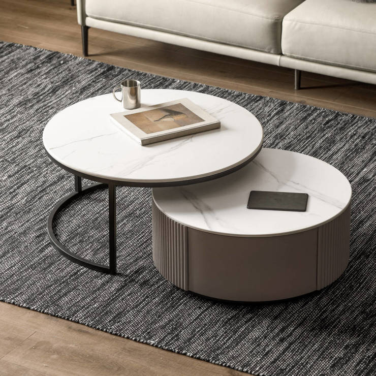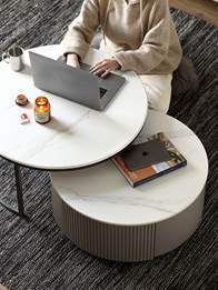 这款莱可系列的岩板茶几,法式轻奢风。大小组合,错落有致,以块面的叠落演绎空间关系,颇富设计美感,白岩板看似朴素的外表下隐藏着低调的贵族气质。