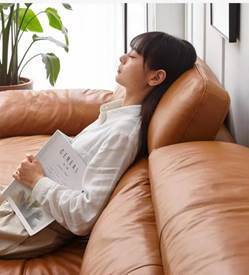 这款云端系列的真皮沙发,是源氏木语将实木与真皮相结合的创新尝试。以简约的意式风格,演绎了轻奢美学。简而不凡,集高颜值与舒适度为一体,“裸感级”头层牛皮覆盖面,并以柔软羽绒填充座包、靠包与扶手,高回弹性,外柔内弹的坐感,如身处云端。