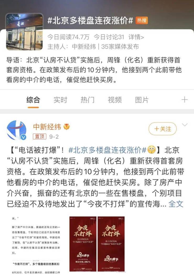 #认房不认贷后中心忙到凌晨三点#、#北京有楼盘24小时内销售额破亿#、#北京多楼盘连夜涨价#