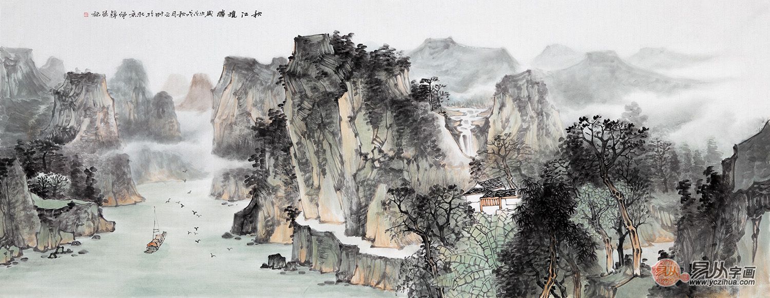 家中装饰画 诸明新品构图国画《蜀中送人游庐山》