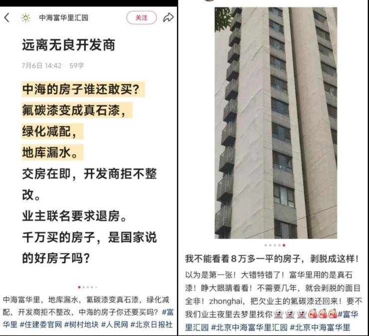 更讽刺的是,同为“拾光系”产品的中海富华里项目,曾因外立面氟碳漆偷换为真石漆遭业主集体维权,开发商却将责任推给“销售个人错误”。