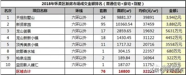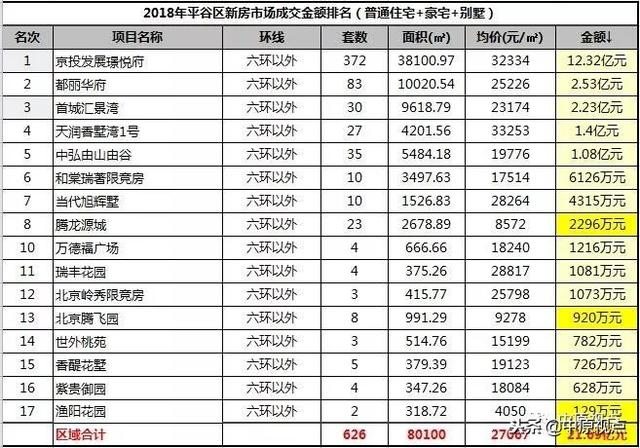 2018年北京各区新建住宅(普通住宅+豪宅+别墅)成交状况